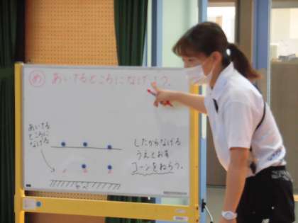 1年4組 体育 「ねらってなげよう」 公開日 2021/06/09 更新日 2021/06/09 1年 相手がいないあいているところをみつけてなげよう! 3人が投げて2人が守ります。 あいているところを上手にみつけられるかな。 1番下の写真の子は上手にあいているところをみつけていました。