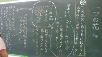 一つの花の読み取りをしています。今日は,「一つの花にこめられたお父さんの思い」について考えています。