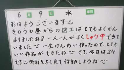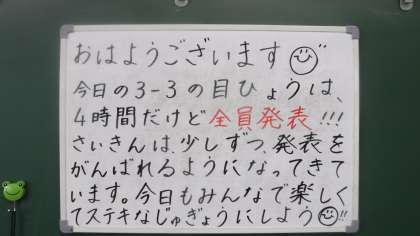 先生が前向きなメッセージを書いています。 元気になりますね。