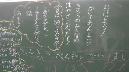 他の学年の先生も,朝黒板に昨日の学習のことや,みんなの良かったことなどを書いています。