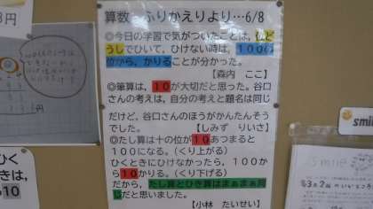 3年2組 教室系掲示板 公開日 2021/06/09 更新日 2021/06/09 3年 2組の掲示板に,算数での考えやふりかえりが掲示されています。 子どもたちも見て,前の学習をふりかえることができます。