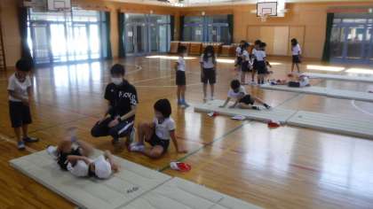 前転・後転の学習をしています。