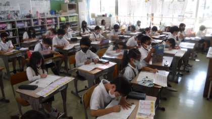 落ち着いた雰囲気で漢字の学習に取り組んでいます。