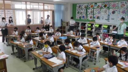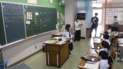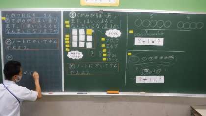 1年2組 算数 公開日 2021/06/11 更新日 2021/06/11 1年 初任者の研究授業が行われました。昨日の淡口先生の話し合いからの授業です。 先生も,子どもたちにとっていい授業をするために,日々勉強しています。 そして,たくさんの先生が岡野先生の授業を見に来ています。経験年数の浅い先生を育てようとするいい雰囲気です。