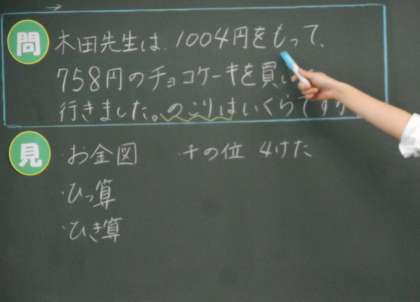 百・十の位が「0」の場合の計算の仕方を考えています。解決の見通しを出し合いました。