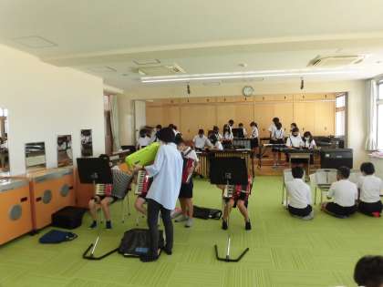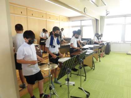 6年2組 音楽 「合奏」 公開日 2021/06/14 更新日 2021/06/14 6年 アラジンの「ア・ホールニューワールド」を合奏していました。 打楽器や鍵盤・木琴など,パートに分かれて練習しています。