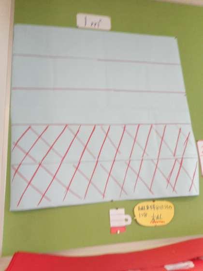 6年算数 分数のわり算 9 公開日 2021/06/15 更新日 2021/06/15 6年 これによって,わる数が分数の場合,その逆数をかけることで答えが求められることがわかりました。教室には,問題の2/5平方メートルがイメージできるように,掲示物が貼られていました。