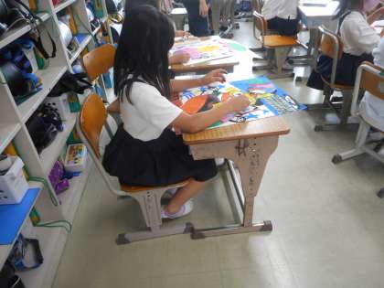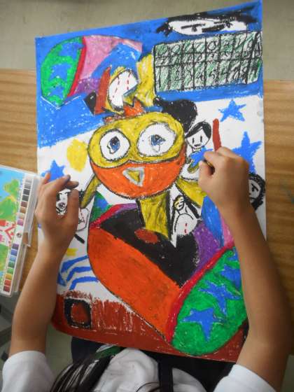 2年図工の学習です。不思議なたまごが割れると・・・という設定です。
