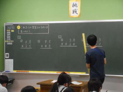 小数どうしのかけ算の学習です。これまでの筆算との違いを考えます。