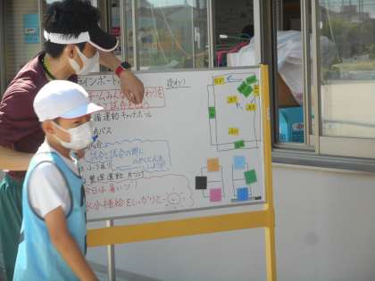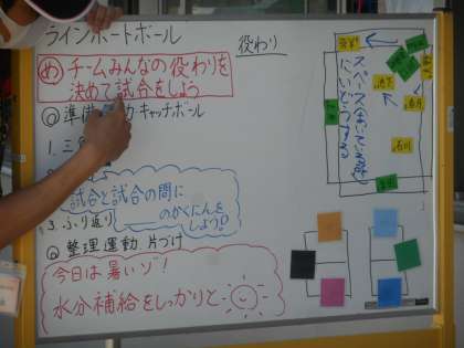 4年2組 ラインポートボール 1 公開日 2021/06/17 更新日 2021/06/17 4年 ゲーム中によくある局面を,うまく打開して得点につなげたチームのふりかえりをもとに,今日のめあてを共有しているところです。