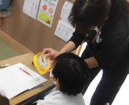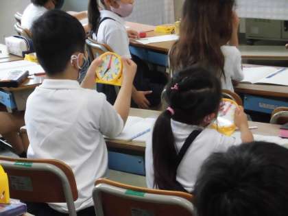 2年1組 算数 「時こくと時間」 公開日 2021/06/18 更新日 2021/06/18 2年 自分の時計を使って時間を正しく読み取ります。 先生はたくさんの子どもに寄り添いながら、一緒になって考えています。
