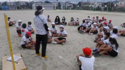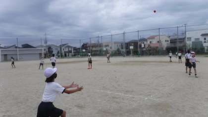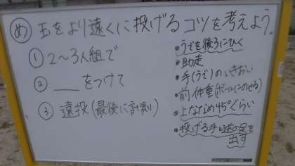 投げることについて考えています。 手と足が同じになるなど難しい感じの子が多かったです。