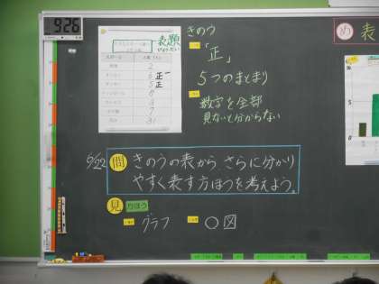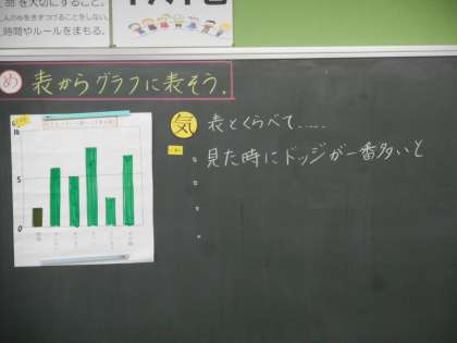 データをわかりやすく表す方法を考えています。昨日の学習から一歩進んで,棒グラフを使っています。