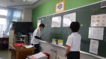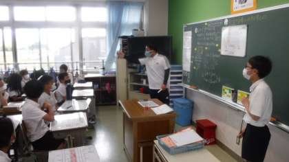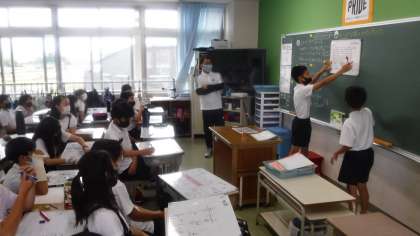 子どもたちが算数に対し自由に発言ができる中で考えています。 図を示し子どもたちが説明しながら,考えを整理しています。