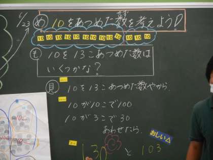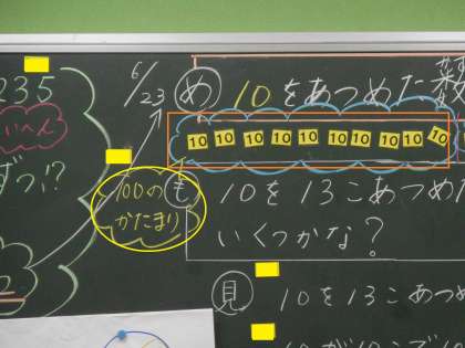 2年4組 算数 公開日 2021/06/23 更新日 2021/06/23 2年 ビー玉の数を10のまとまりで数えると13個ありました。これが何個なのかを考えています。10が10こで100になるところまではわかりました。