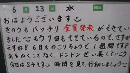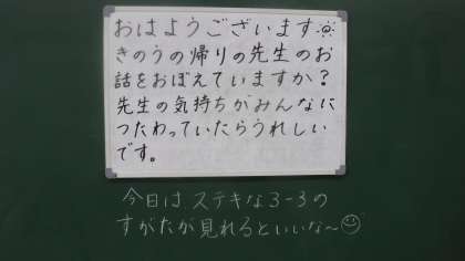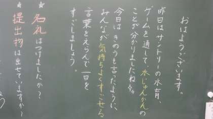 昨日の学習の内容や,今日頑張ってほしいことなどが朝の黒板に書かれていました。