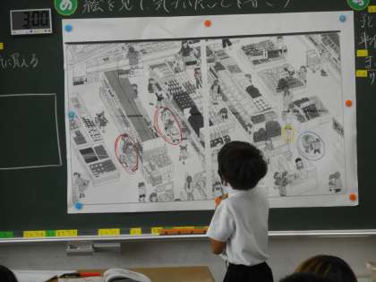 生活経験とつなげて,いろいろな工夫を発見しました。迷子のアナウンスのまねを上手にしている人もいました。