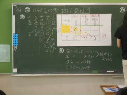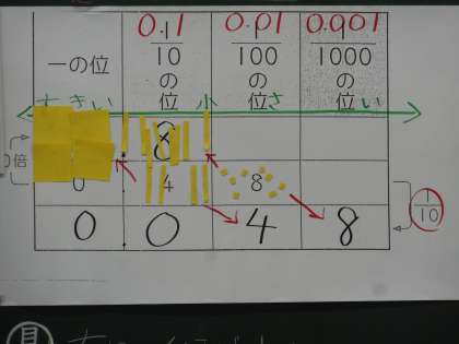 10倍,10分の1にすることで,位がどのように変わるのかを考えています。