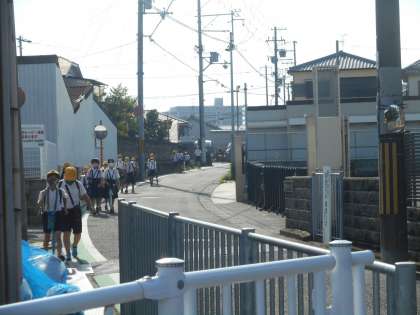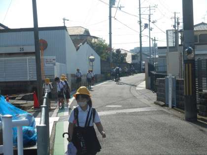 今朝の登校のようすです。久しぶりに晴れました。