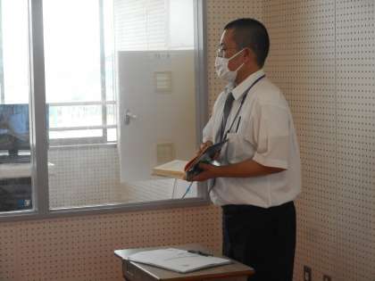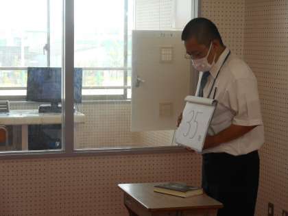 生徒指導の先生からのお話です。夏休みの35日間と,楽しい夏休みを迎えるためのあと7日の過ごし方についてのお話でした。