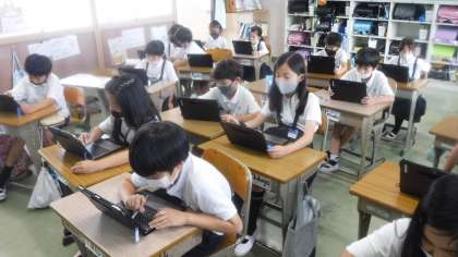学習用端末を用いてスーパーマーケットでの学習を整理しています。