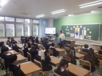 今日から午後も授業があるということを朝の黒板に書いていました。