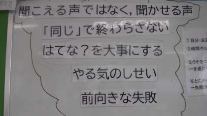 教室後ろには,1学期よりレベルアップした先生からのメッセージが貼りだされています。