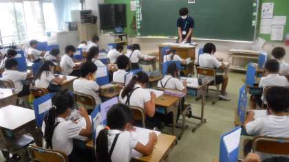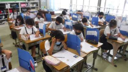 落ち着いた雰囲気でテストをしています。