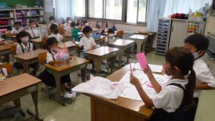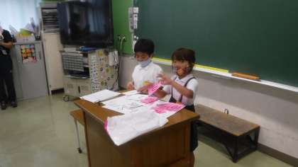 中休みの予鈴の時間を使って算数の問題を子どもたちが出しています。