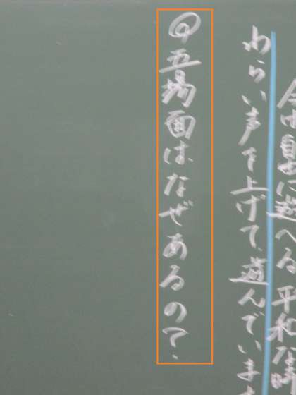 先生から,「この場面はなぜあるのだろう」という問いかけがありました。