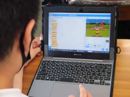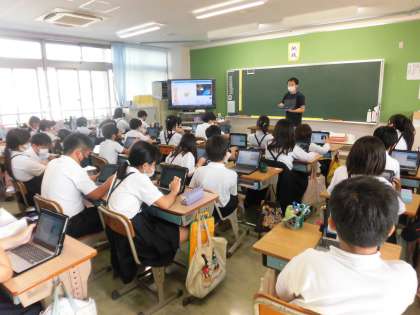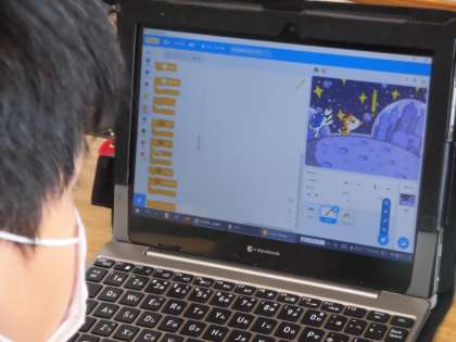 一人一台のパソコンを使って,プログラミング教育に取り組んでいました。