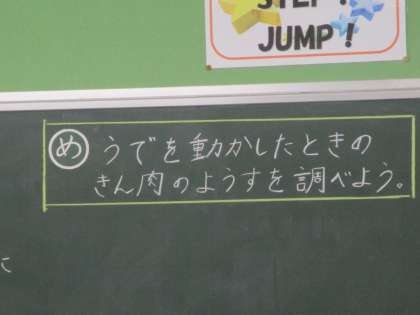 体が動く仕組みについて,腕を動かしたときの筋肉の様子から考えます。