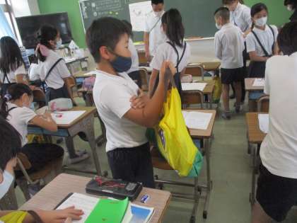 筋肉の様子がよくわかるように,少し重いものを手に持ちました。