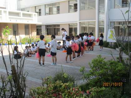 応援を担当する人たちです。みんなが自分の役割をもって,体育参観に臨もうとしているようです。