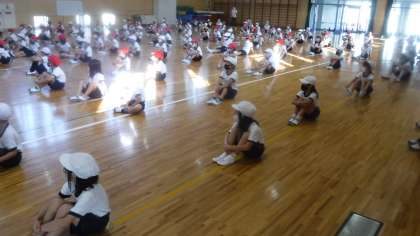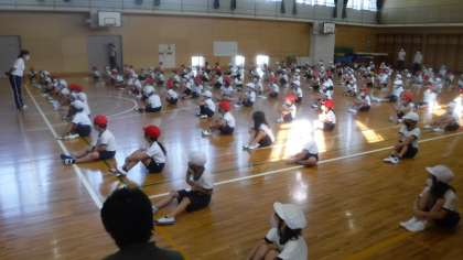 練習が終わり,先生のお話を集中して聞く2年生です。