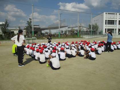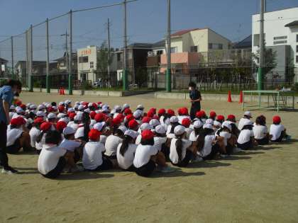 最初に,これまでのみんなのがんばりや,これからめざしたいことについて,先生の話を聞いています。
