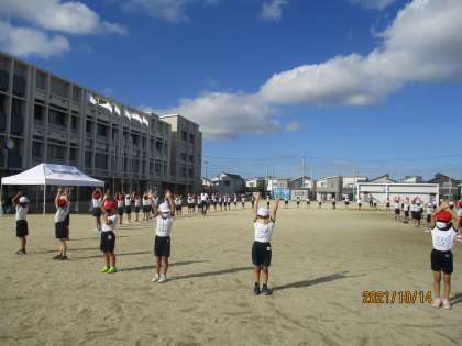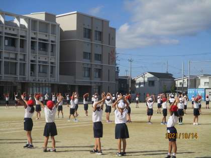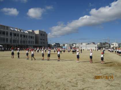 体育参観まであと1週間です。動きができてきたところで,様々な並び方を確かめています。