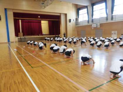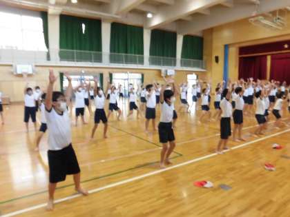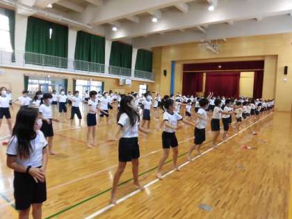 5年生 体育参観へ向けて 公開日 2021/10/14 更新日 2021/10/14 5年 リズムにのったダンスが魅力です。 隊形ごとに動き出しが違う部分もあり,見ごたえがあります。 細かい部分をしっかりと意識して,動きも心もそろった演技になるといいですね。