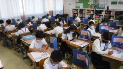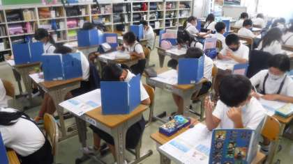動画で学習を復習した後,テストを実施しました。 落ち着いた雰囲気で取り組んでいます。