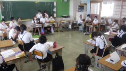 クラス会議をしています。 題材を決めクラスで話し合いをしています。