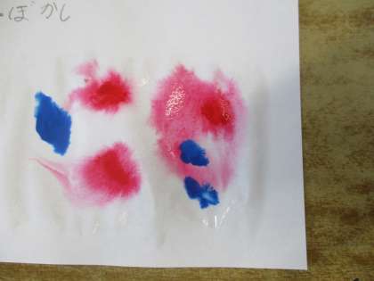 先に水を塗って,そのあとに絵の具をおく「ぼかし」の技法です。