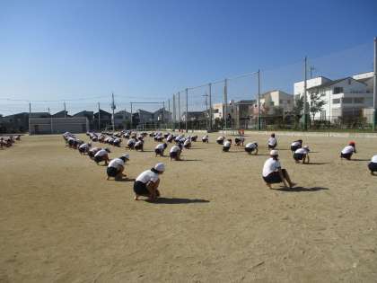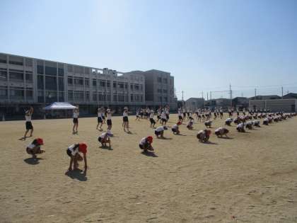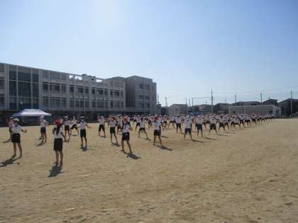 団体演技の練習開始です。「応援団」の人が叩く太鼓の音がとても効果的でした。