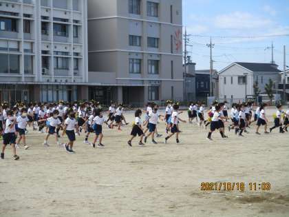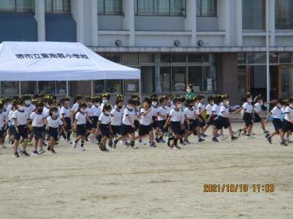 1年生の団体演技の練習です。入場の場面です。