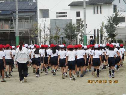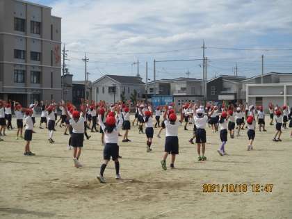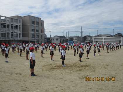 3年生も参観当日の流れに沿って練習していました。入場から新堺っ子体操をしているところです。