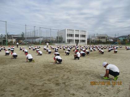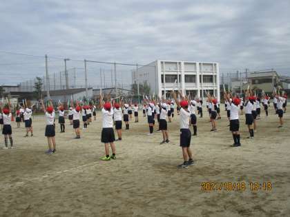 最後は団体演技です。今日は手具(ばち)をもって踊っています。本番はこれとは別のものを使うそうです。