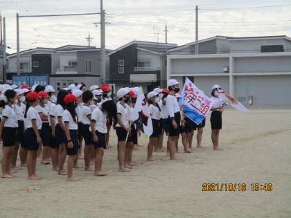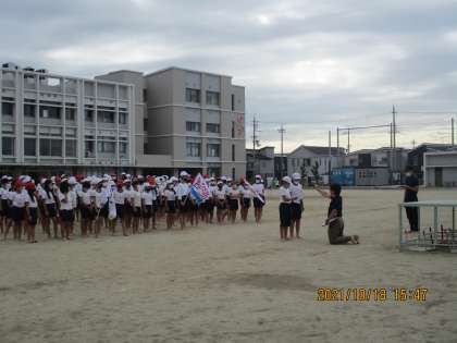5年生も当日の流れに沿ったリハーサル形式の練習でした。クラスの旗がかっこいいですね。