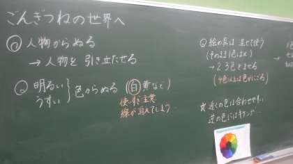 昨日の様子です。国語で学習したごんぎつねの絵を描いています。