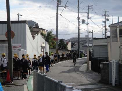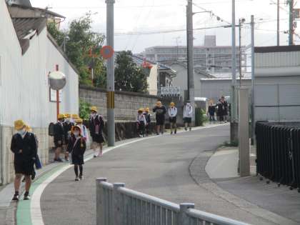 今朝の登校の様子です。風が冷たく寒い朝です。