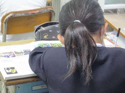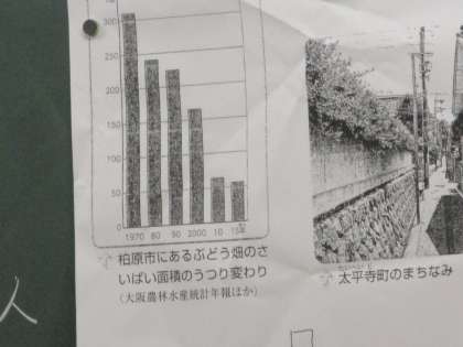 資料(グラフ)から,ぶどうの栽培面積が激減していることを読み取り,これについての取組も調べています。