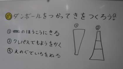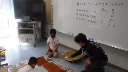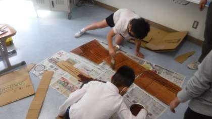 ダンボールを用いて木を作っています。